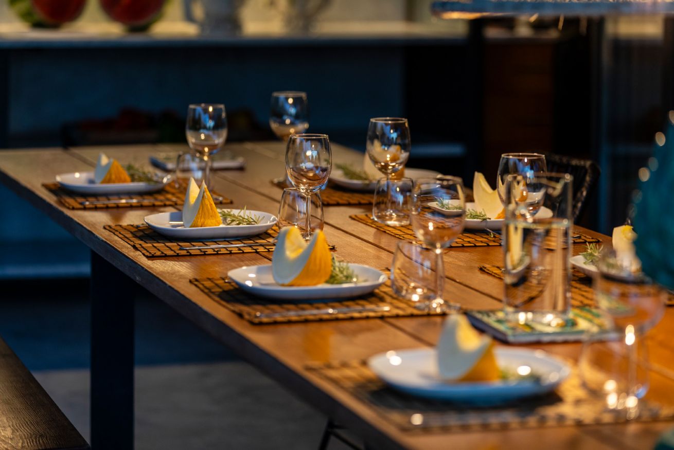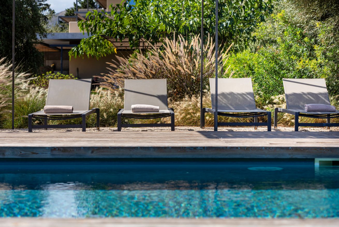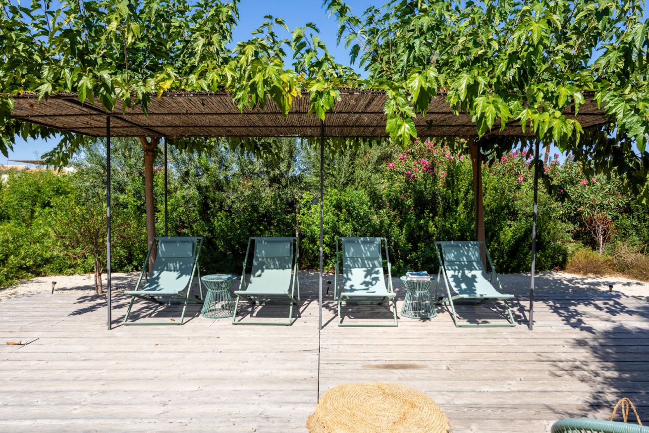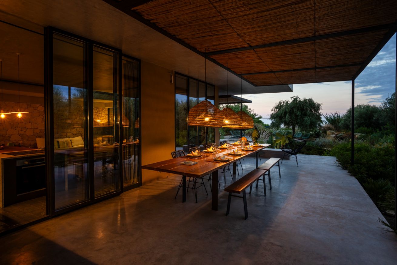 Il pavimento decking circonda la piscina e tutto l’ampio solarium, creando l’atmosfera perfetta dove potrete trascorrere momenti di relax totale: cuscini, sdraio, poltrone design per cocktail a bordo piscina, rilassanti pomeriggi fino al tramonto, o rigeneranti bagni mattutini. Il tutto accompagnato da un’impareggiabile vista mare e dai profumi del rigoglioso giardino siciliano di ulivi e piante aromatiche e ornamentali.