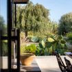 Nella veranda con vista sul mare, puoi godere di conviviali cene all’aperto. Da qui, l’accesso alla casa vacanza attraverso una larga porta finestra, riduce i confini visivi proiettando la bellezza verde del giardino fino all’interno.