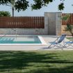 La casa è dotata all'interno di una cucina con tutti gli elettrodomestici, 4 camere matrimoniali, 1 camera singola, 3 bagni e 1 soggiorno; all'esterno c'è una grande veranda attrezzata con tavolo, sedie, poltrone e vista piscina.