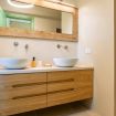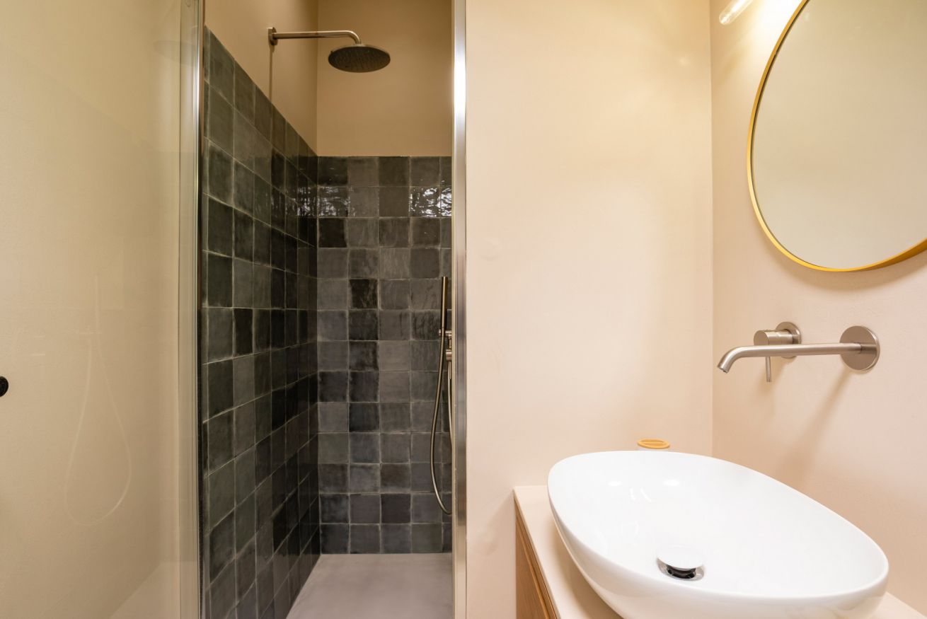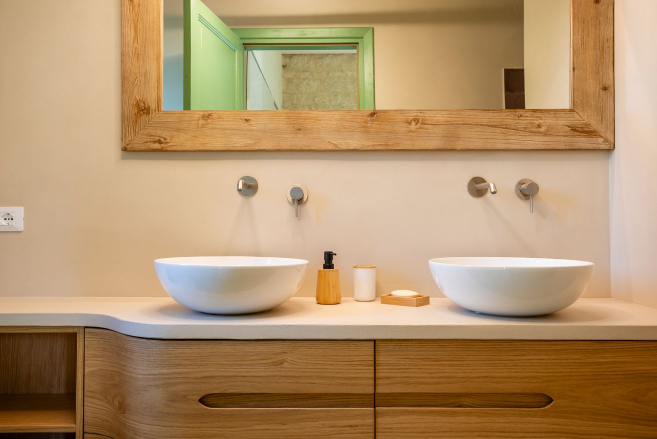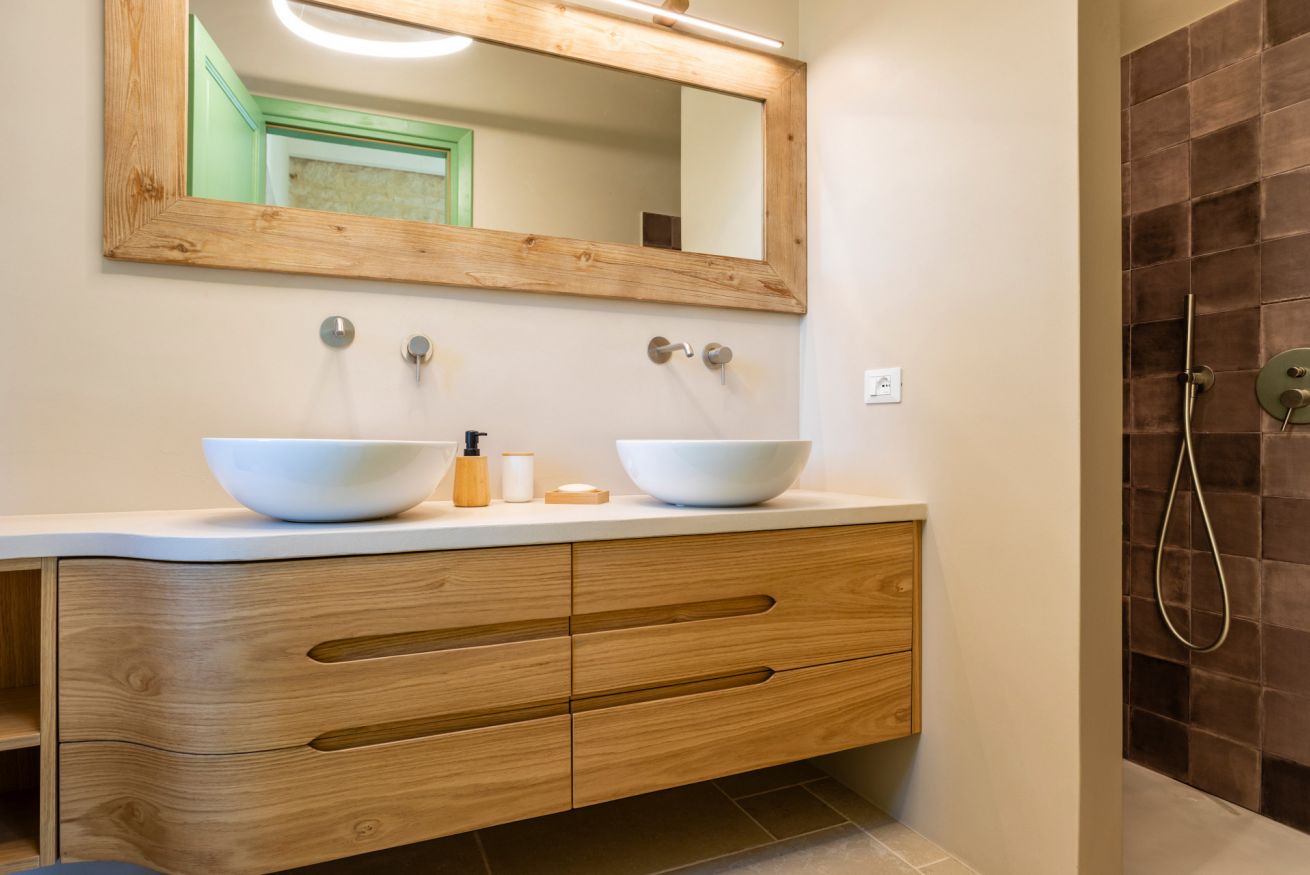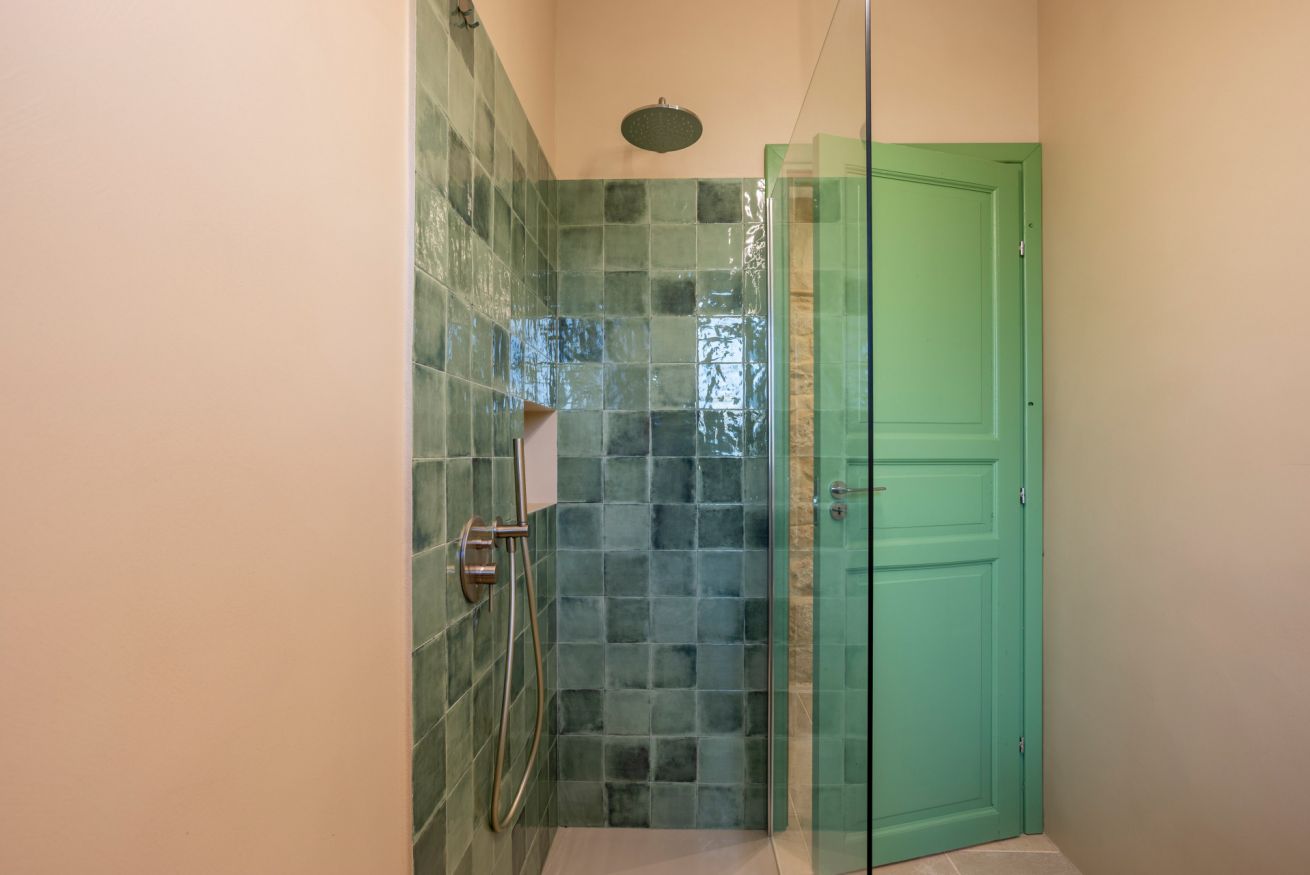 pareti in pietra e materiali naturali, arredi essenziali e accoglienti, ambienti luminosi grazie alle ampie aperture verso il patio e la piscina La zona living unisce convivialità e comfort, mentre le 5 camere e i 4 bagni offrono privacy e tranquillità, perfette per un soggiorno rigenerante.