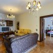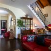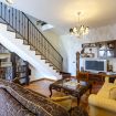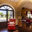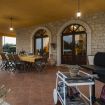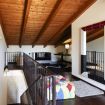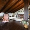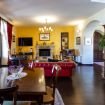 Dalla veranda si accede alla zona giorno, provvista di divani e poltrone in pelle disposti attorno al caminetto, angolo Tv e zona pranzo.