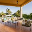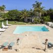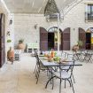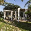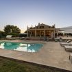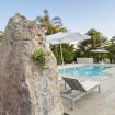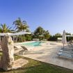 Realizzata nella tipica pietra locale di Modica, la villa dispone di un enorme patio che si affaccia su un magnifico giardino con palme e una grande piscina di acqua salata, dotata di area idromassaggio, su cui si affaccia un gazebo con tavolo, sedie e area relax, mentre tutt'intorno sono disposti lettini e ombrelloni.