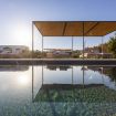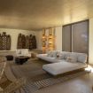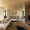 La luminosa zona soggiorno ospita una cucina open air e una living con ampie vetrate con vista sulla piscina e sul mare.