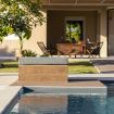 La casa è su 2 livelli. Al piano terra ci sono 2 camere matrimoniali, 1 bagno con doccia e una cucina con soggiorno che si affaccia sulla piscina. L'attico, a cui si accede tramite una scala esterna, è composto da una zona giorno con angolo cottura, una camera da letto e un bagno con doccia.