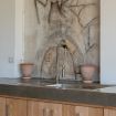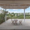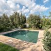 All'esterno, sul lato della cucina, si apre una splendida terrazza rivolta su una cava, mentre sul retro della casa si trova una piscina di forma quadrata immersa nel giardino della casa.