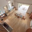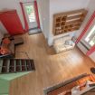 Al piano terra trovano posto una bella cucina, la zona living ricavata sotto al soppalco e un bagno con una comoda doccia.
