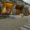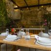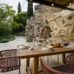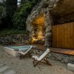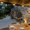 Il piano superiore, che ospita la casa principale, è raggiungibile tramite delle scale in pietra che conducono direttamente all'area esterna, fulcro della villa, con cucina, pergola, zona pranzo e una piccola piscina (3x2), quasi incastonata nella roccia che, all'occorrenza, può essere riscaldata.