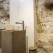Il piano terra è costituito da un ambiente unico che ospita un letto matrimoniale, un divano e un angolo cottura. Ci sono, inoltre, una lavanderia, un bagno con doccia e un ascensore che consente di raggiungere tranquillamente il primo piano. Su richiesta è possibile aggiungere un letto supplementare. L'ambiente è pulito e minimalista ma reso particolare dal soffitto con la roccia a vista.