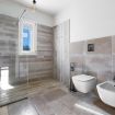 La zona notte è composta da 3 camere da letto di cui 2 matrimoniali e 1 camera tripla con letto matrimoniale + letto a castello singolo. Completano la villa 2 bagni con doccia.