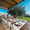 Dalla zona giorno, attraverso una veranda attrezzata, si accede al giardino, al centro del quale si trova una meravigliosa piscina.